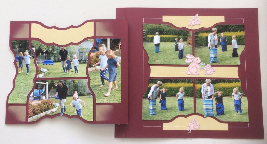 Hilary Hamilton created this set of pages with the Verlaine template and pre-cut pages with her Easter photos.