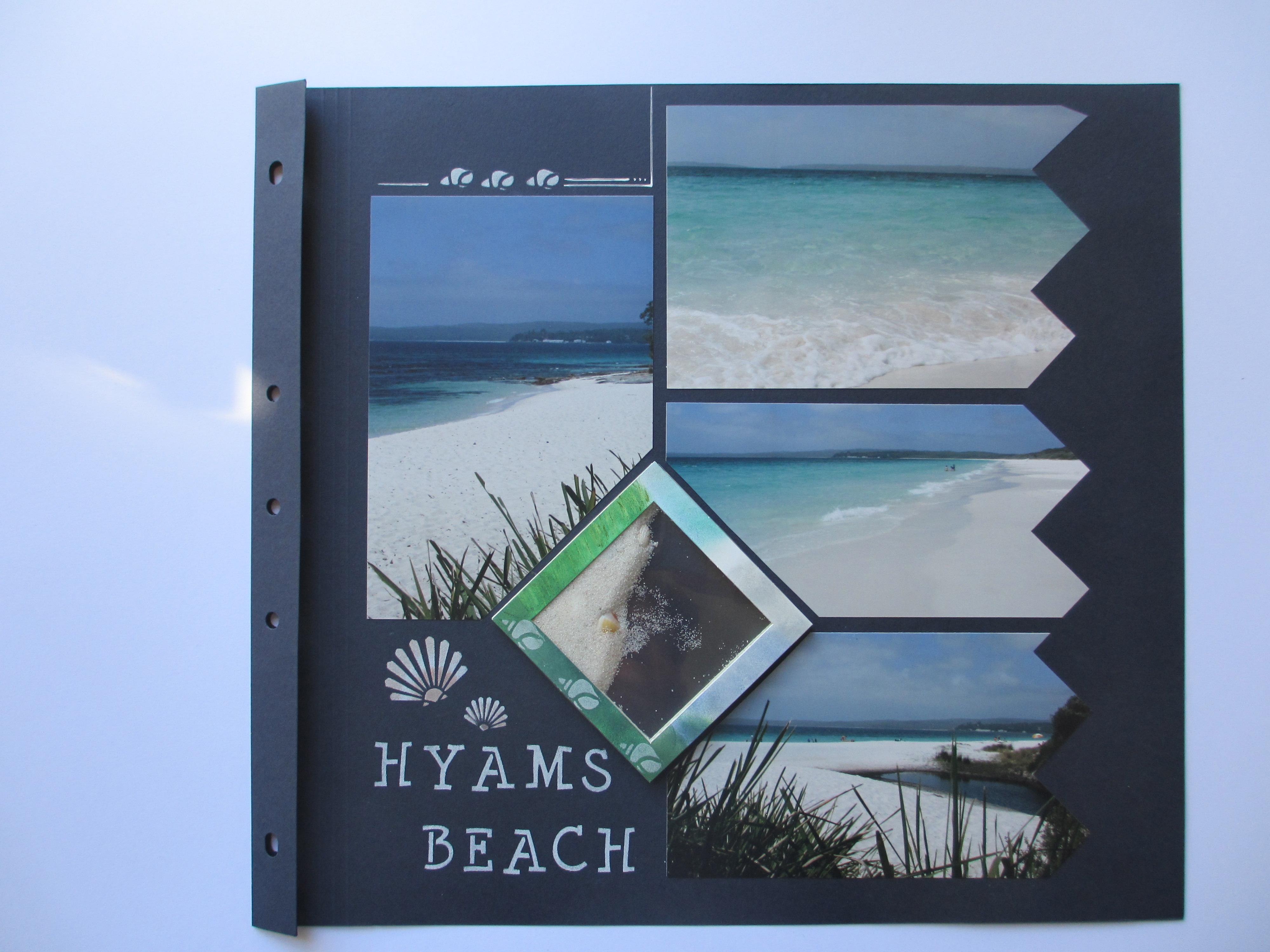 An AZZA frame was used in the ‘square’ so that I could put some sand from the actual beach ‘on’ the page.
