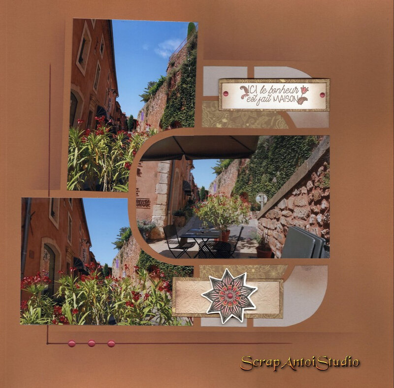 This is a double page layout by Christelle using the Sherwood stencil set. Christelle has used products from the Rising sun decoration theme.