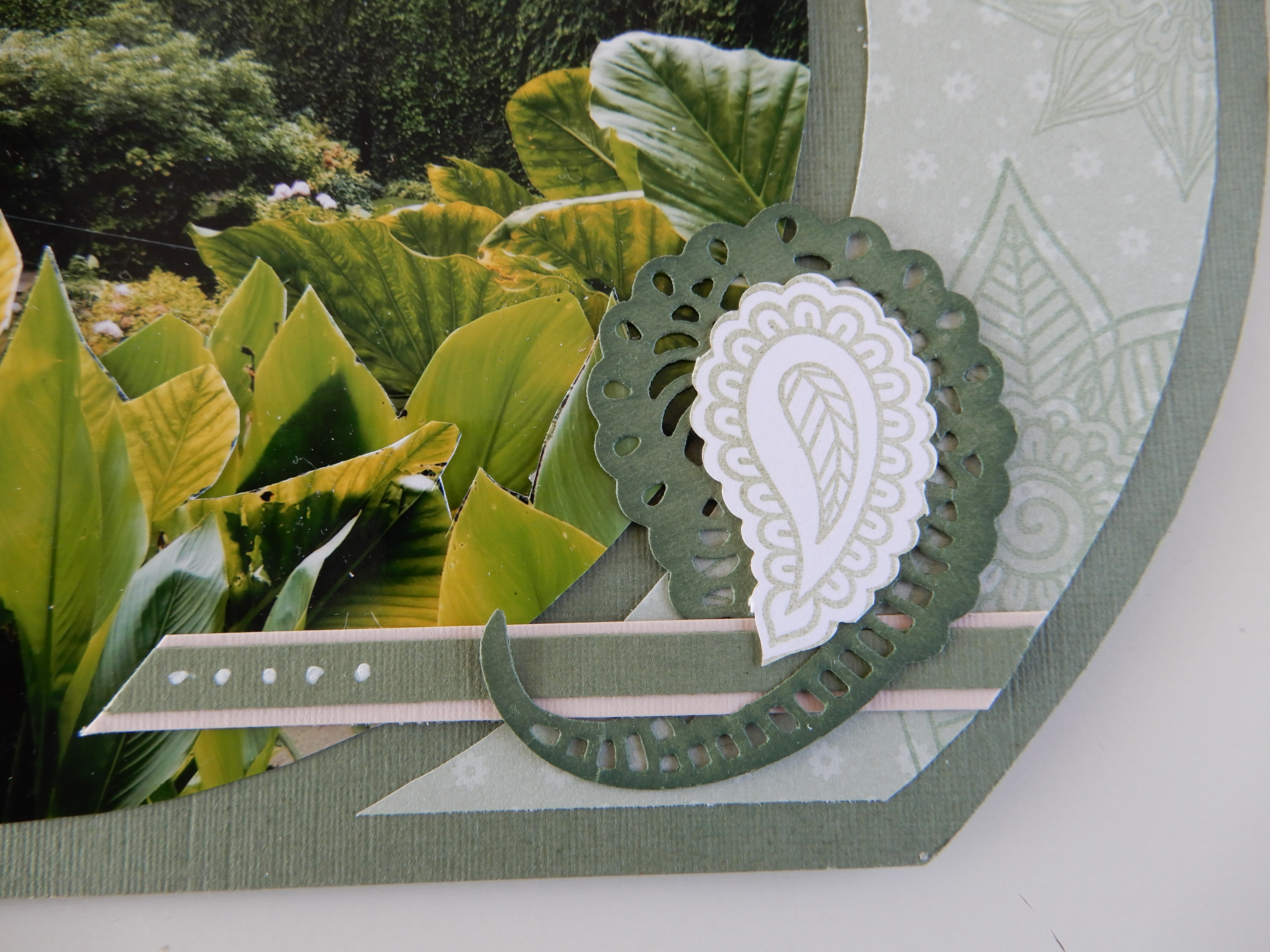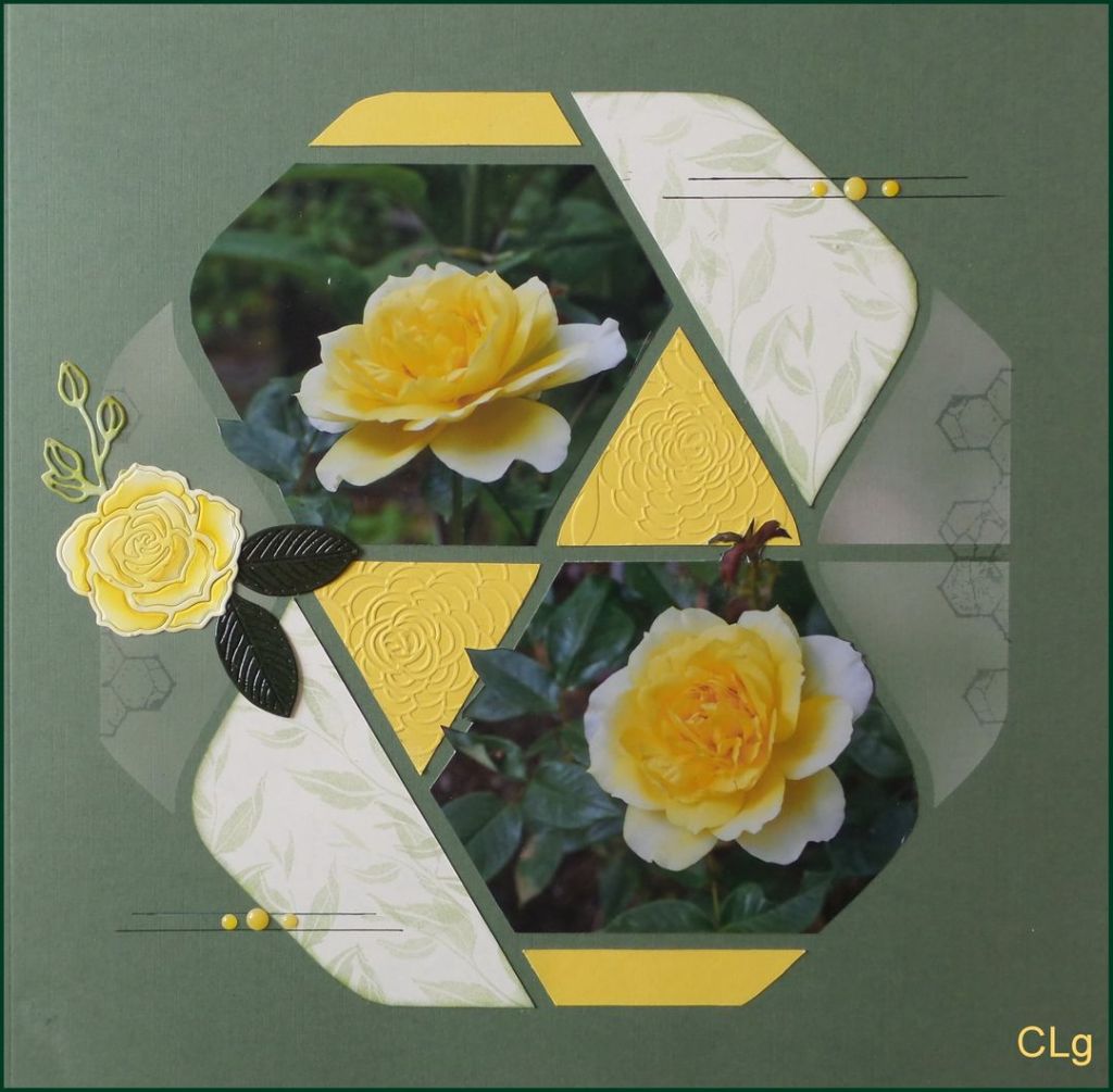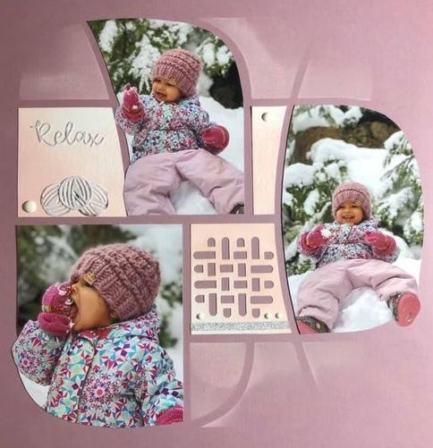 Another lovely layout by Roz in Europe. Roz has used the Bombay die and the Relax dies released last month. The Vellum paper with a dot pattern is a sneak peek at product to be released next month.