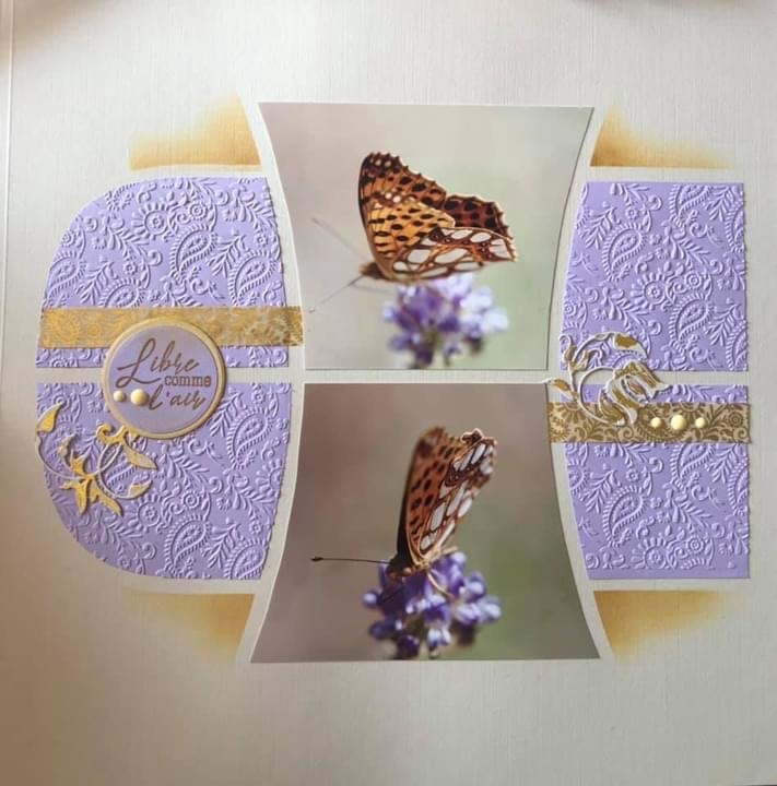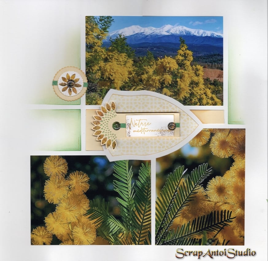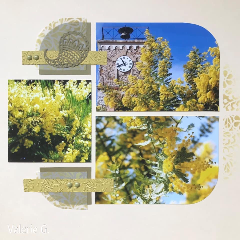 This beautiful layout above was created by Rachel, an AZZA Consultant in Queensland. Rachel has used the Alpes-Maritimes embossing folder on her papers and decoration from the Botanical Scrap kit Plus.