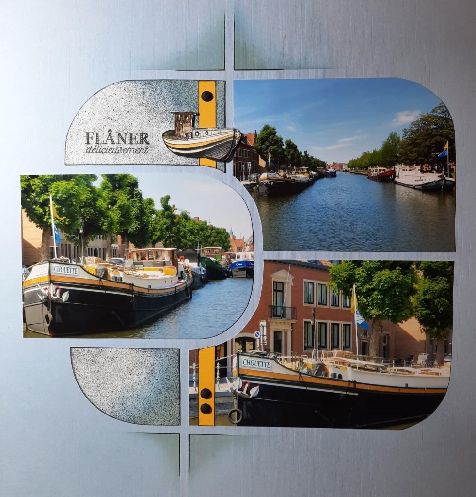 I loved the simplicity of this layout from Jocelyne. The little Trawler micro stamp is still one of my favourites, note how she has changed it to suit her photos.