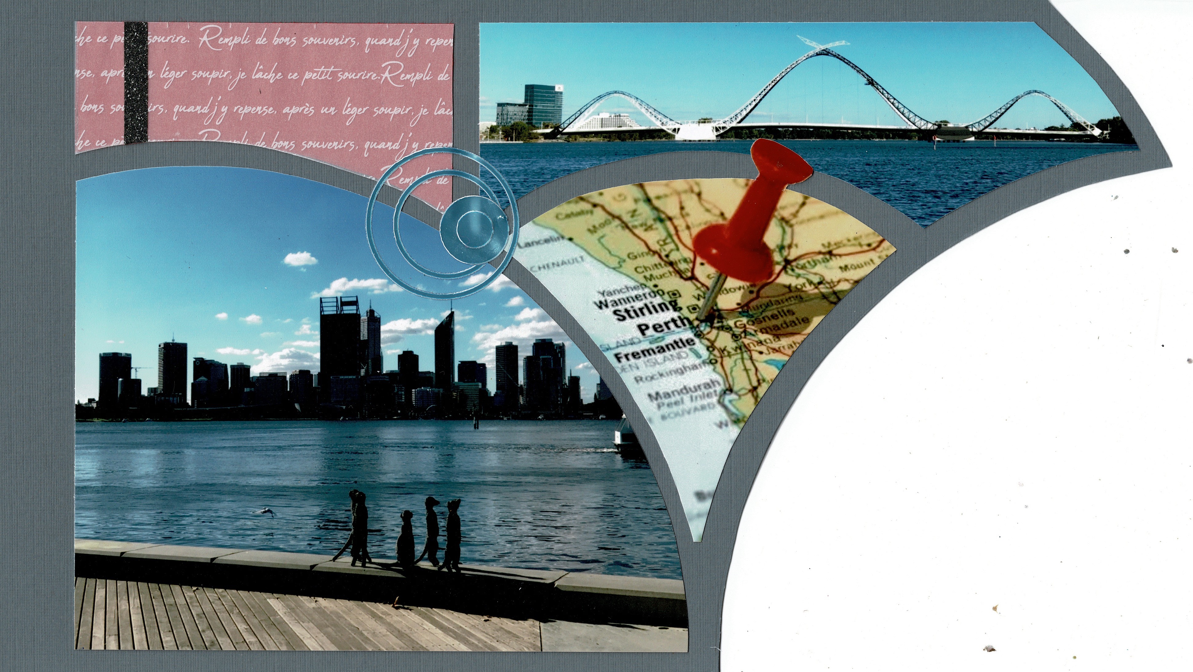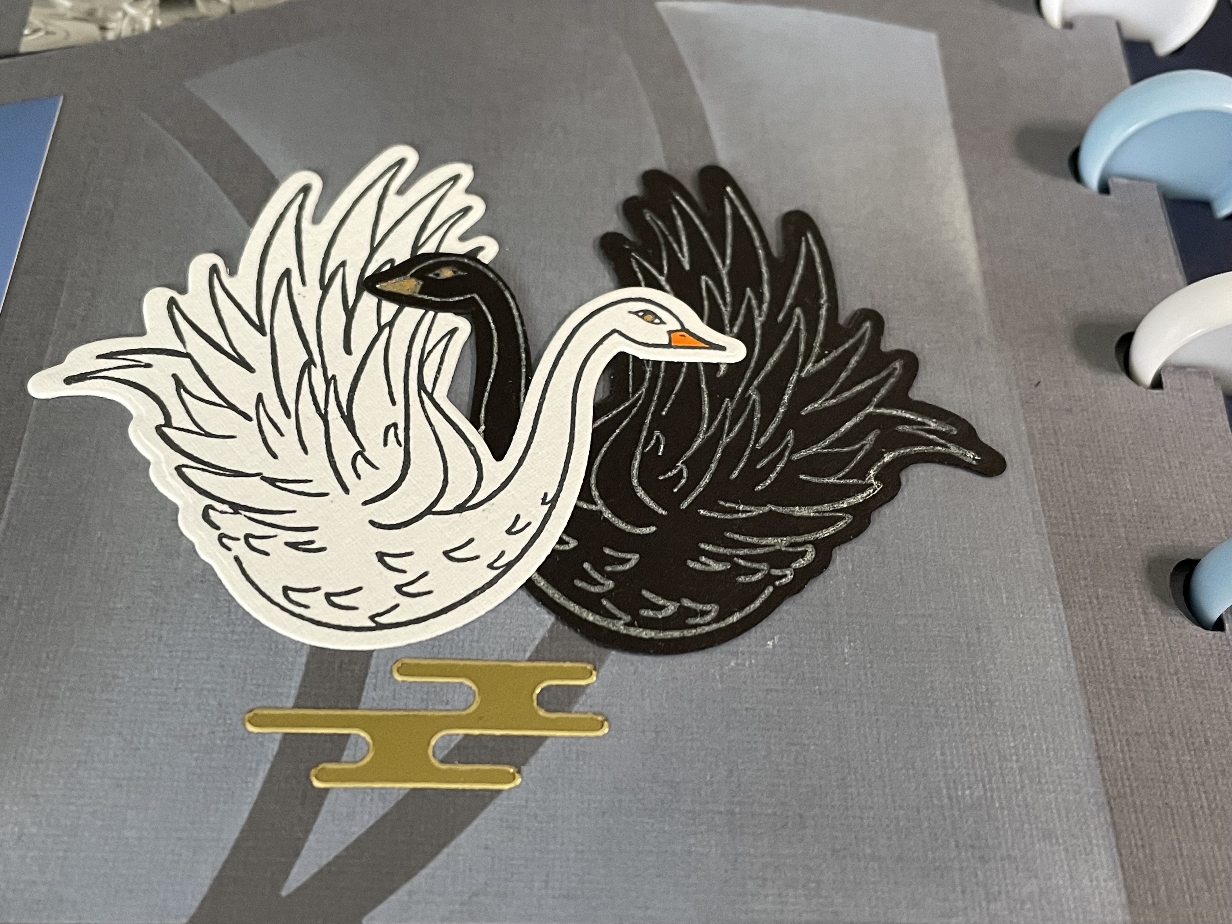 Below you can see a close up of my decoration using the Silicon stamp. The Silicon stamp allows you to flip your image on your page. I used the Swan stamp from the Frosty Lake stamp and die set. The decoration tells the story of the bridge which is over the Swan river in Perth.
