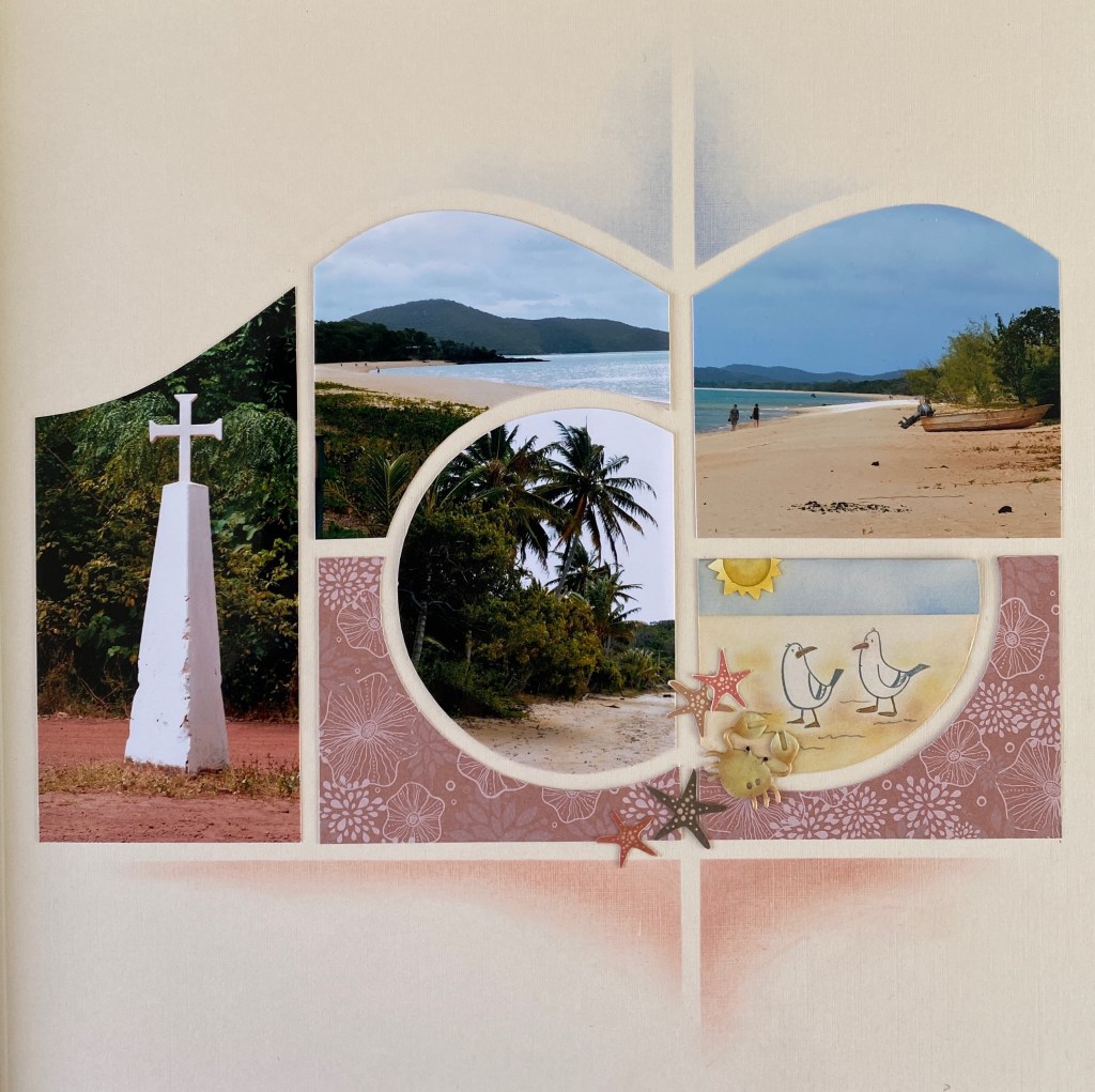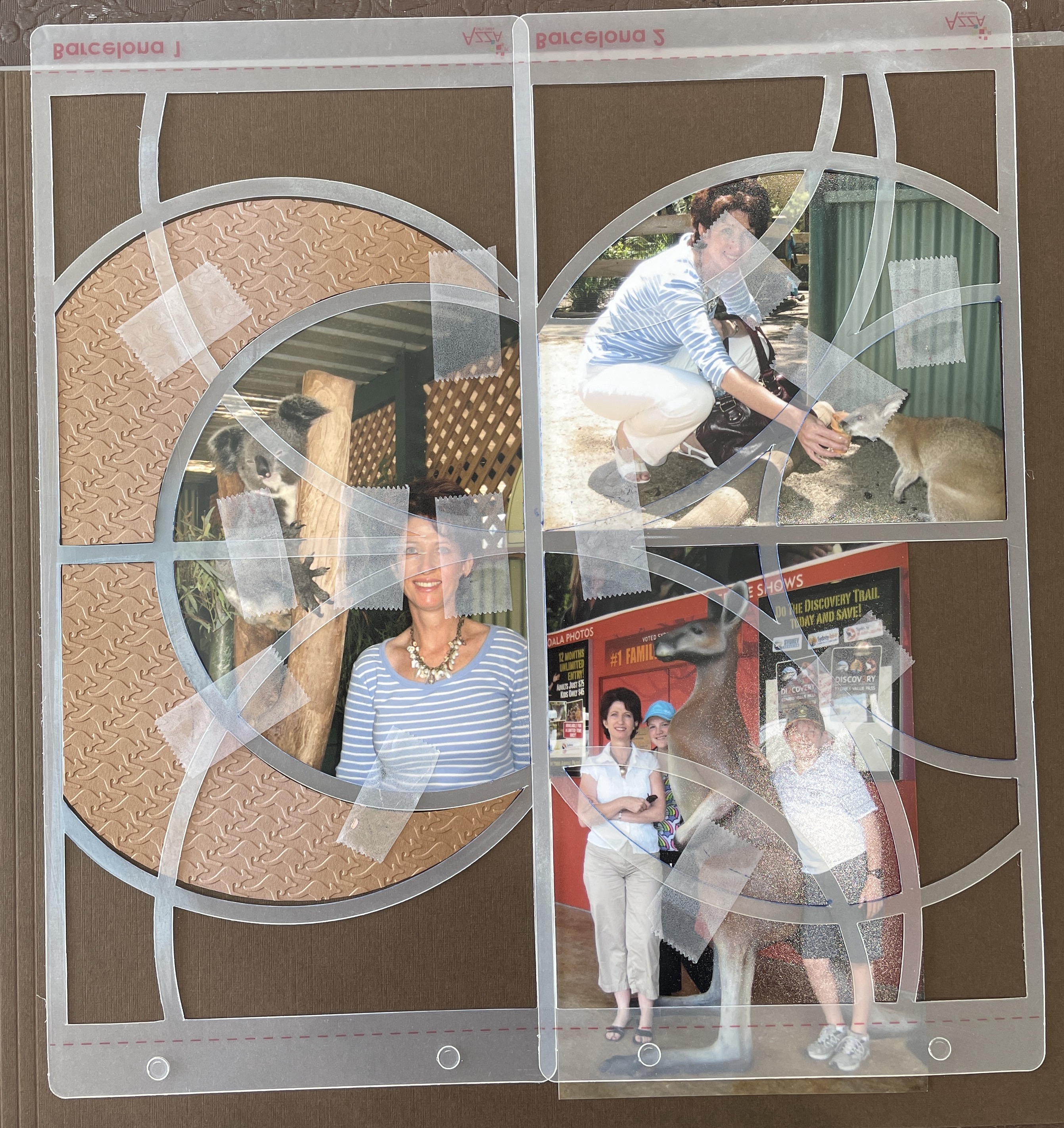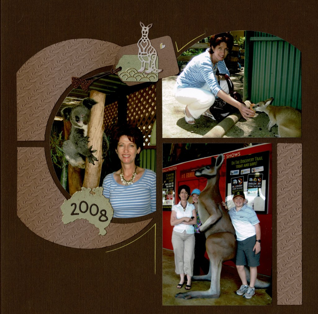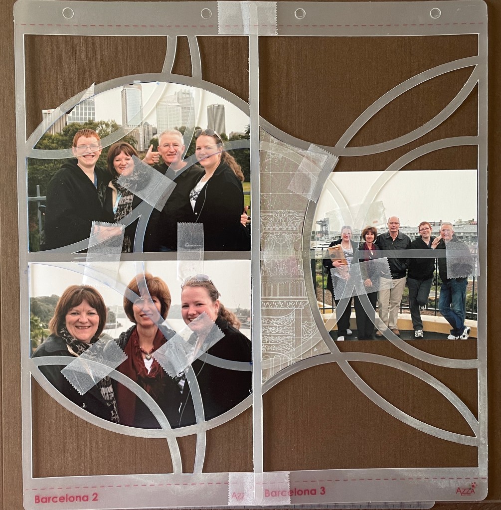 I have created a few pages with the Barcelona set. They are all about a family visit to Australia so I used some of the Australian products that AZZA have as part of their range on the first page. As you can see, I kept one photo complete.