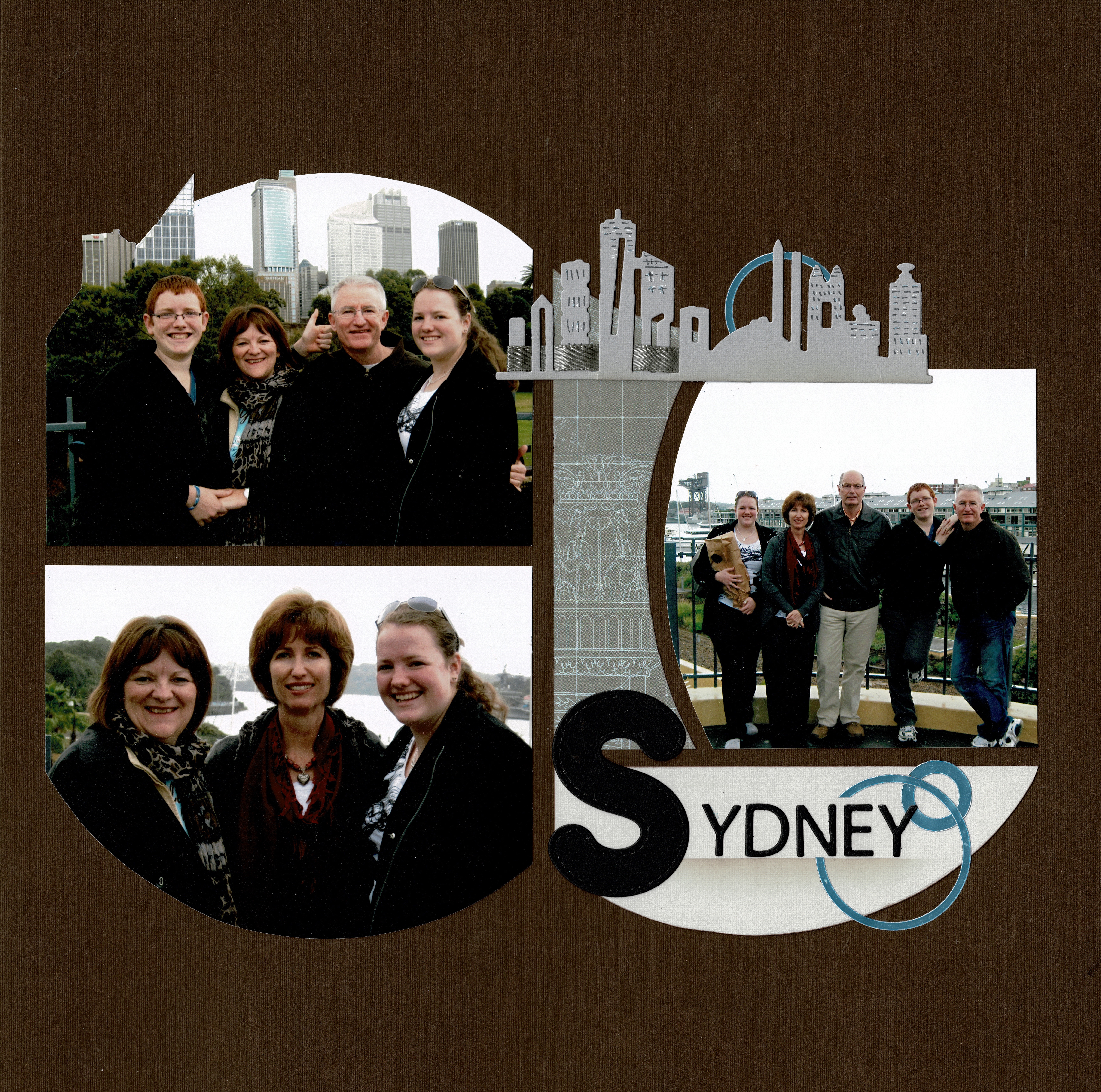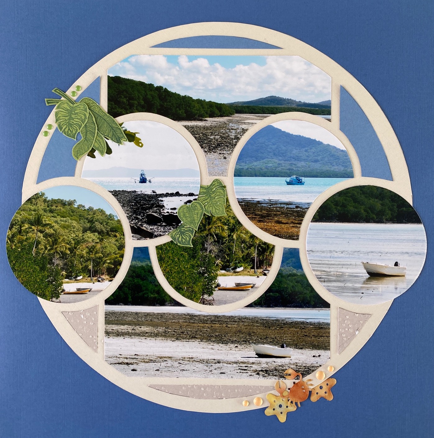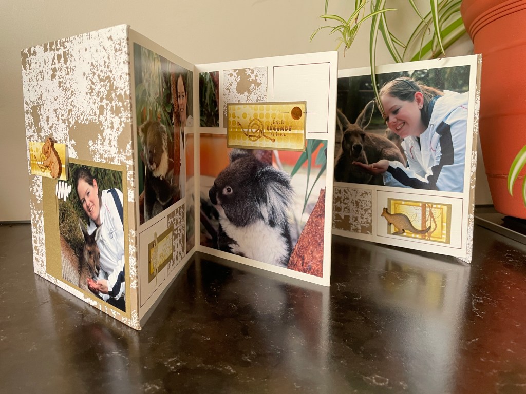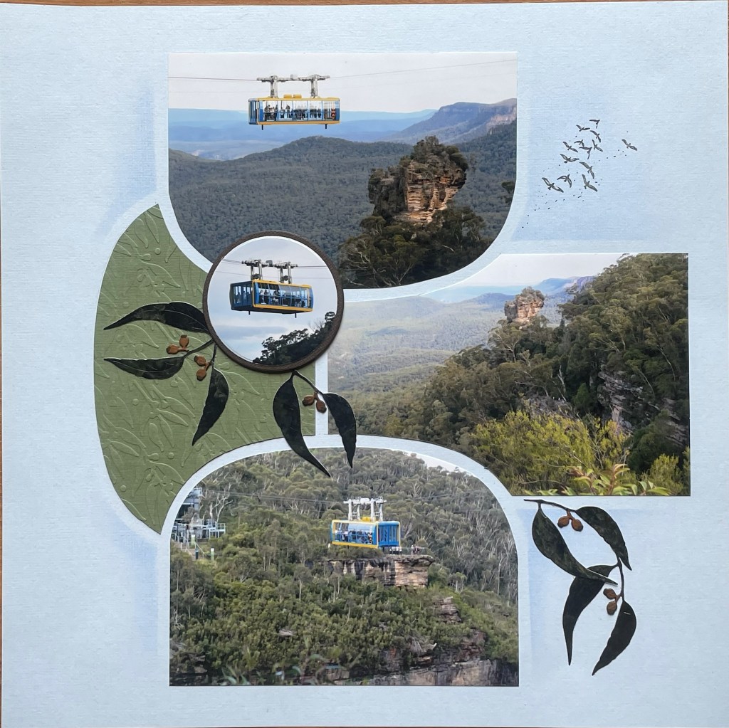 I have created a few pages with the Barcelona set. They are all about a family visit to Australia so I used some of the Australian products that AZZA have as part of their range on the first page. As you can see, I kept one photo complete.