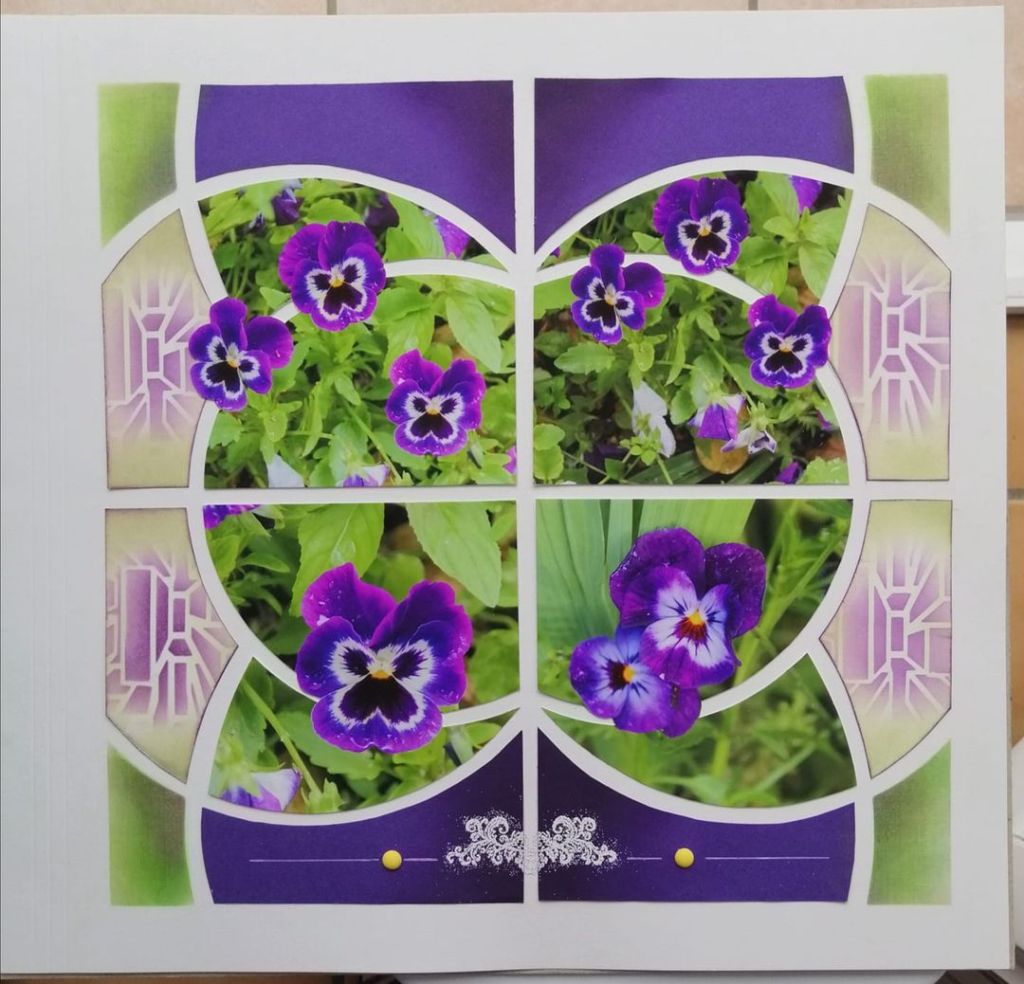 Mini albums can be made in any size and this 15cm x 15cm album is a great size if you don’t have many photos and it can be used with almost any AZZA stencil. Pick a stencil that has been sectioned into quarters and use the quarter of the stencil.