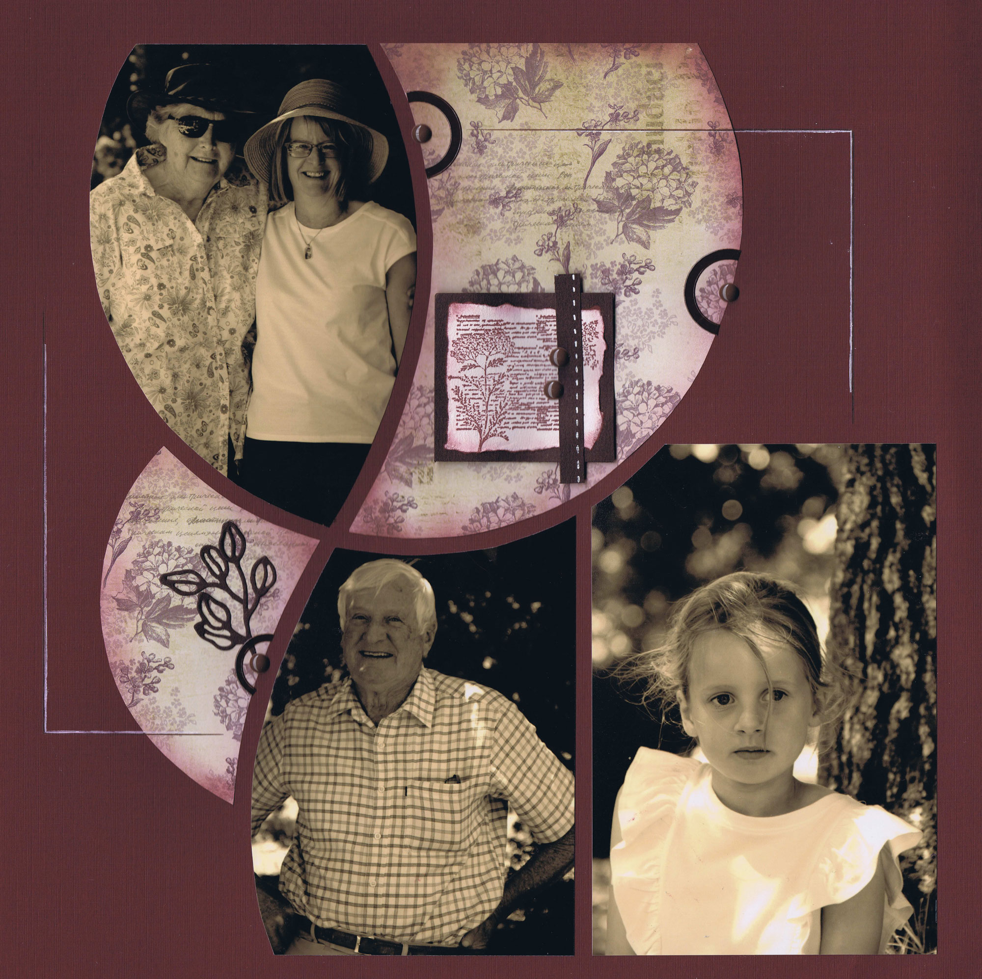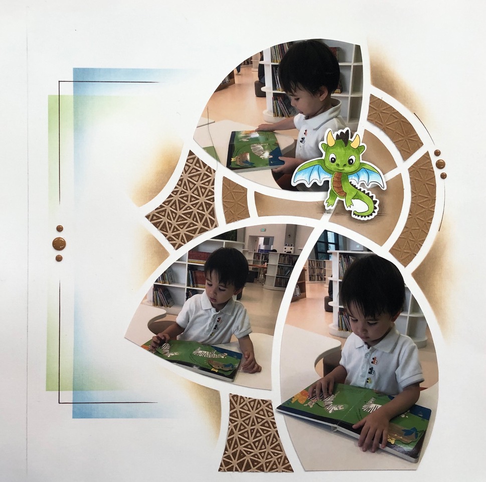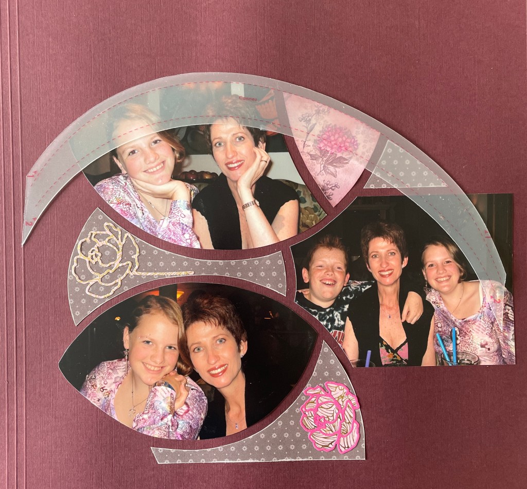 I created the page below based on Christine’s page, but included more photos on the page. I did not add the large circle in the centre.
