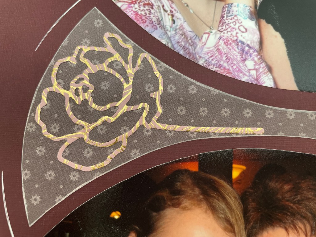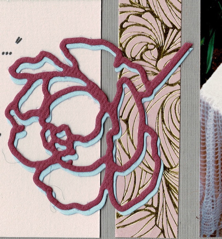 Whilst with the Kyoto stencil, I found this beautiful page using the Cashmere embossing folder on the page. The die cuts used are from the 20th Anniversary birthday box set.