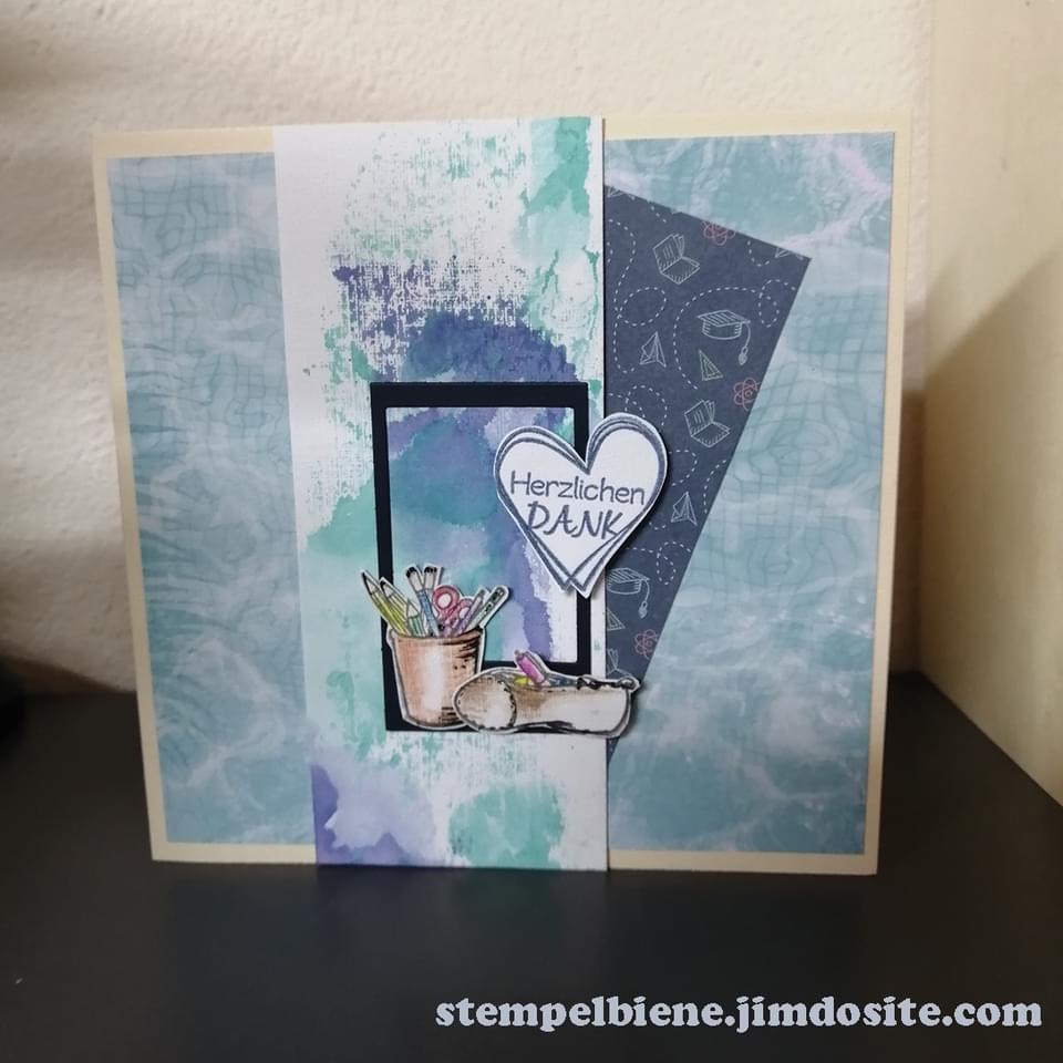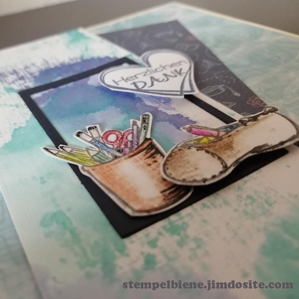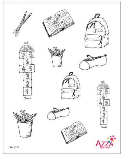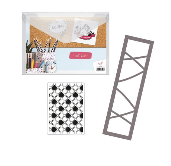 Judy used the AZZA Zurich stencil with the Materials and Texture embossing folder and ‘School’ patterned paper.