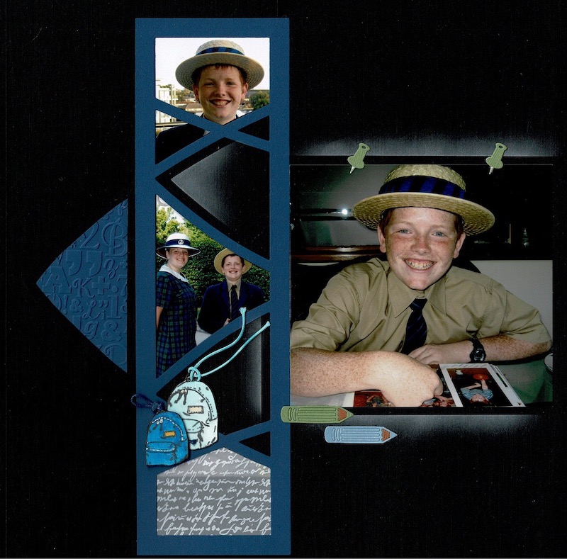 I also like to use the AZZA large Alphabet dies for the first letter of my Title on the page if it can take it. They are easily combined with the smaller AZZA Alphabet dies.