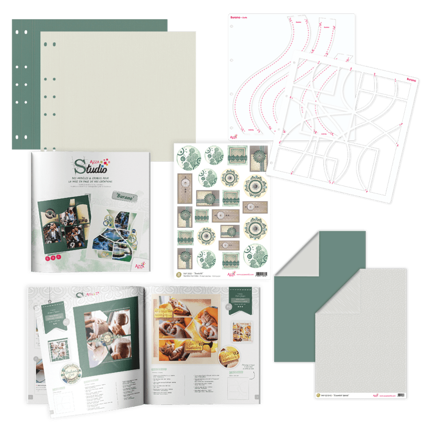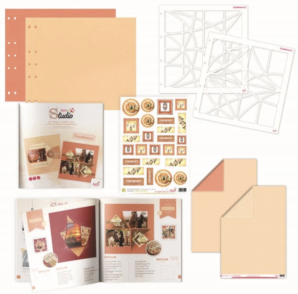 This stencil had been incorporated into a basket for the month but unfortunately not all the products arrived from Europe. A basket without the covers will be placed in the shop so it can be available to purchase. The punched page set is also available to purchase from today. This basket is perfect if you have a special project you want to create. The pages are already punched to create the album that uses the AZZA Binding discs. Note: there a limited amount of this set of pages.