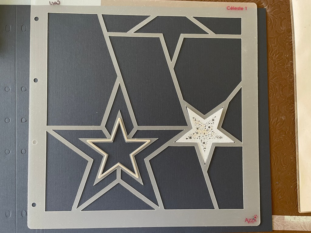 Michelle created this lovely page using the Los Angeles stencil and the star themed products. Michelle has used the AZZA Texture paste with the texture stencil. I do like the stars in various colours with one of them embossed with the star embossing folder.