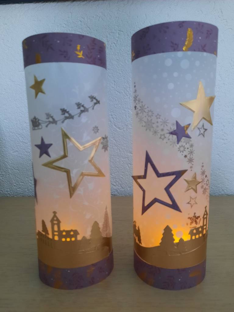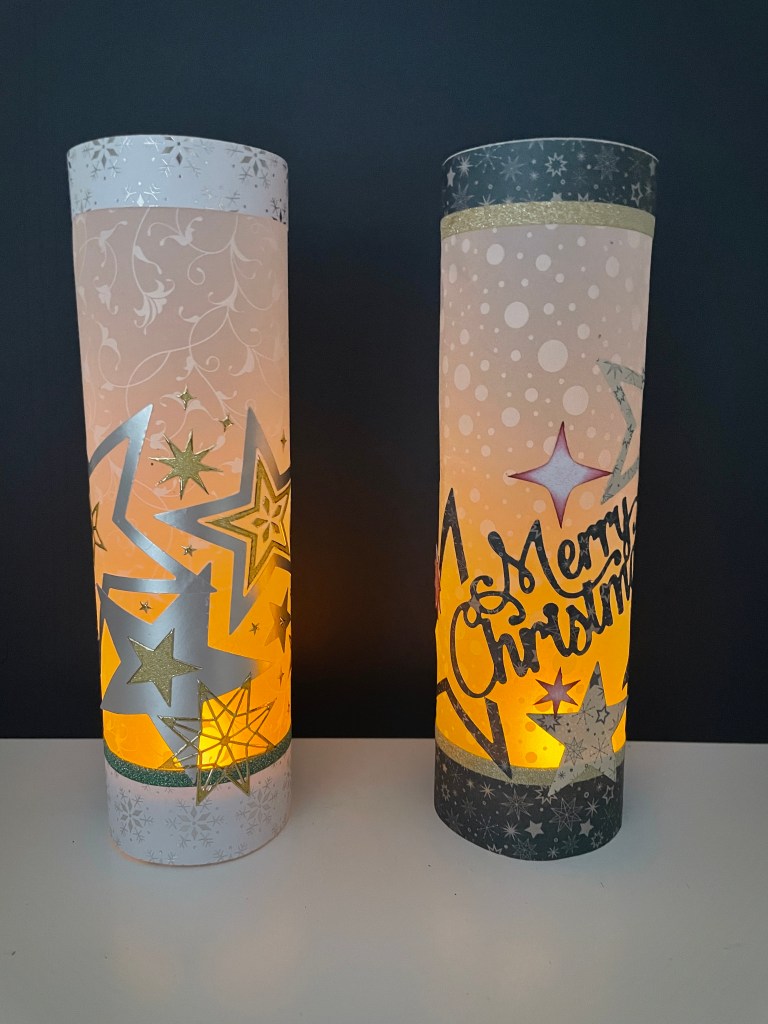 I made these two little lanterns having seen Christine’s beautiful one below. Using the AZZA patterned vellum and various AZZA decoration products your evenings could be lit up so beautifully. Great idea for table decorations for any special occasion.
