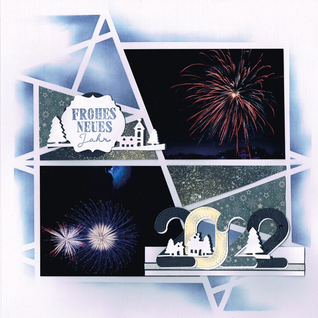 Lastly, a page welcoming in the new year by Stempelbiene in Europe using the lovely AZZA Large number cutting dies.