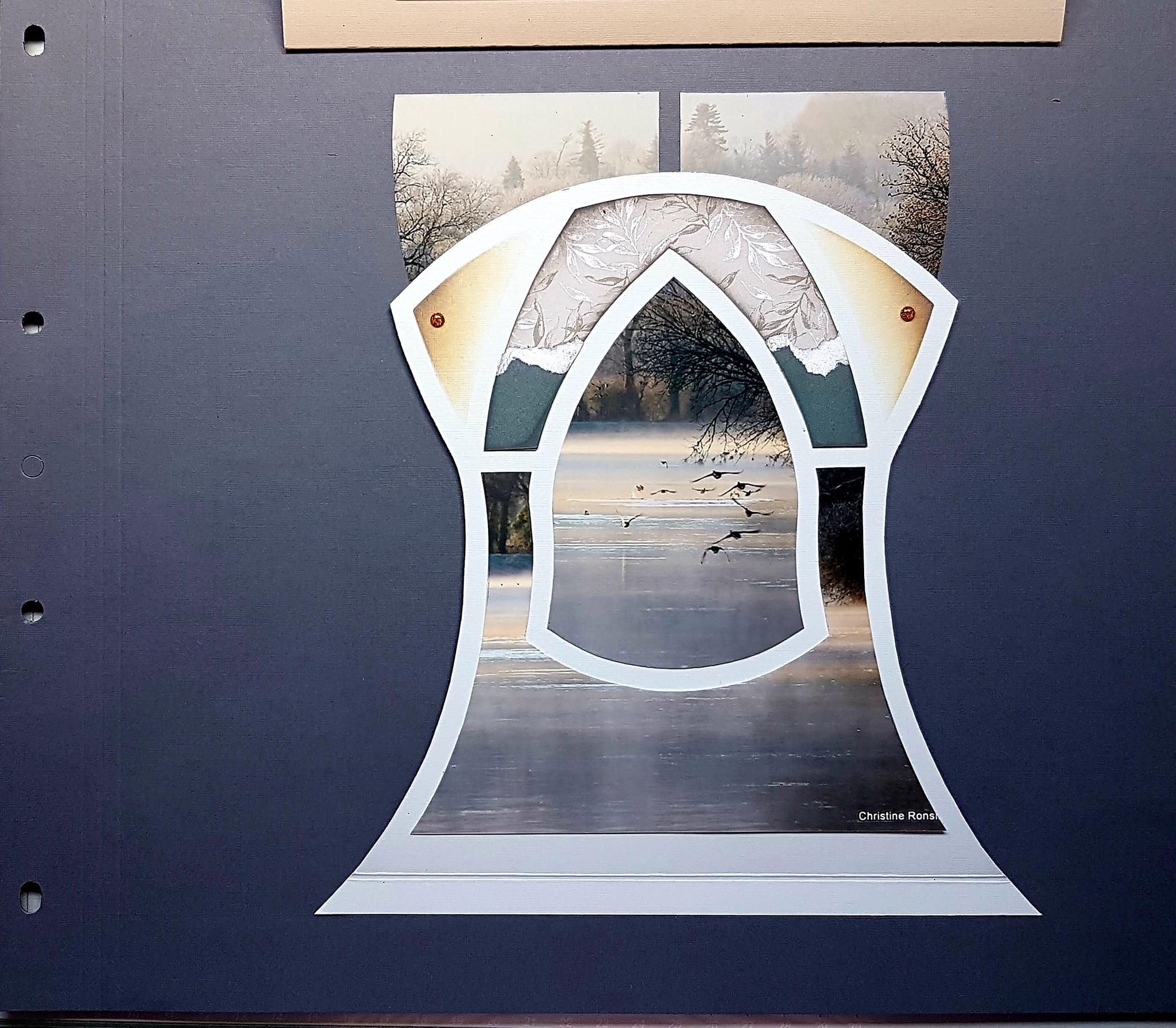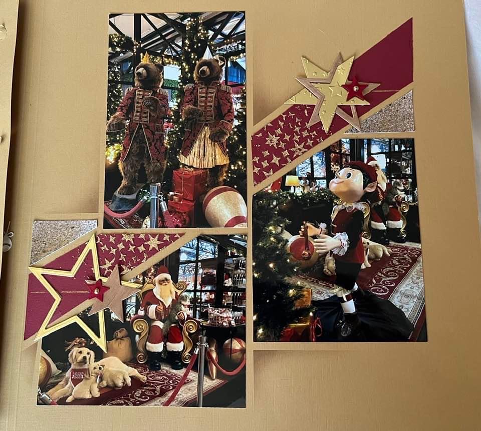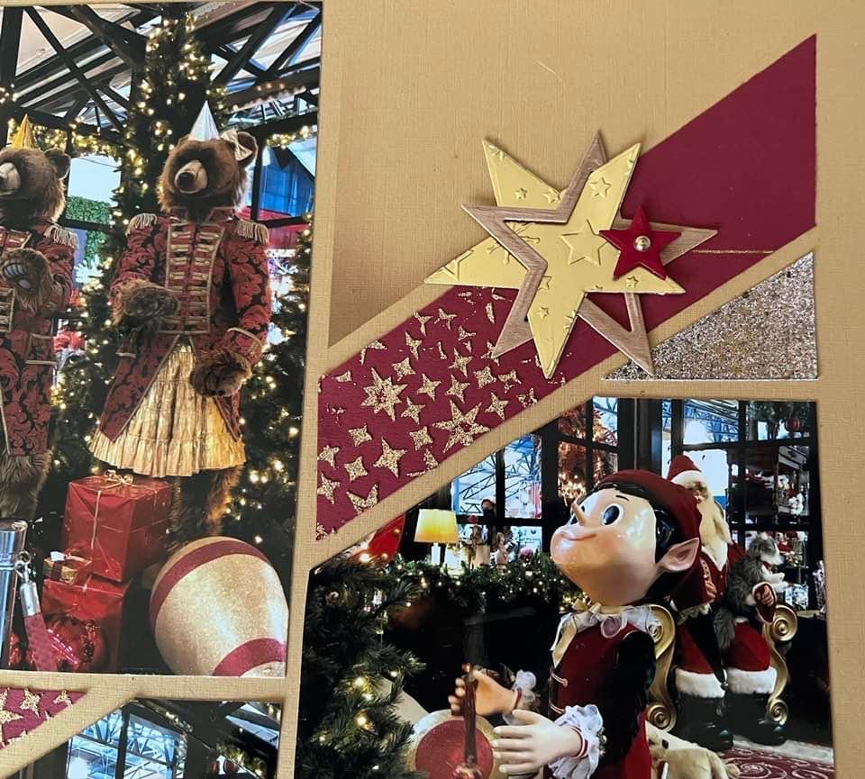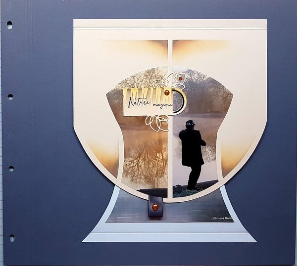 Once again Christine created the beautiful page below using an Accordion sheet with two panels attached to the normal 30 x 30cm scrapping page, opening both left and right.