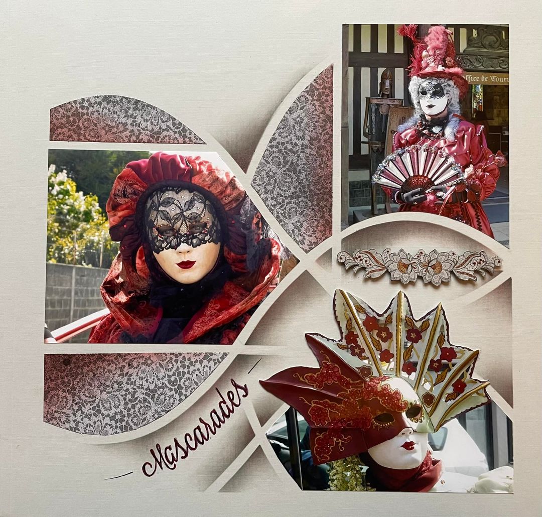 This stencil was used at the annual AZZA Consultant conference last year and some beautiful pages were produced. Christine Caparros and Christine Houbrechts walked us through two beautiful page layouts working with these products.