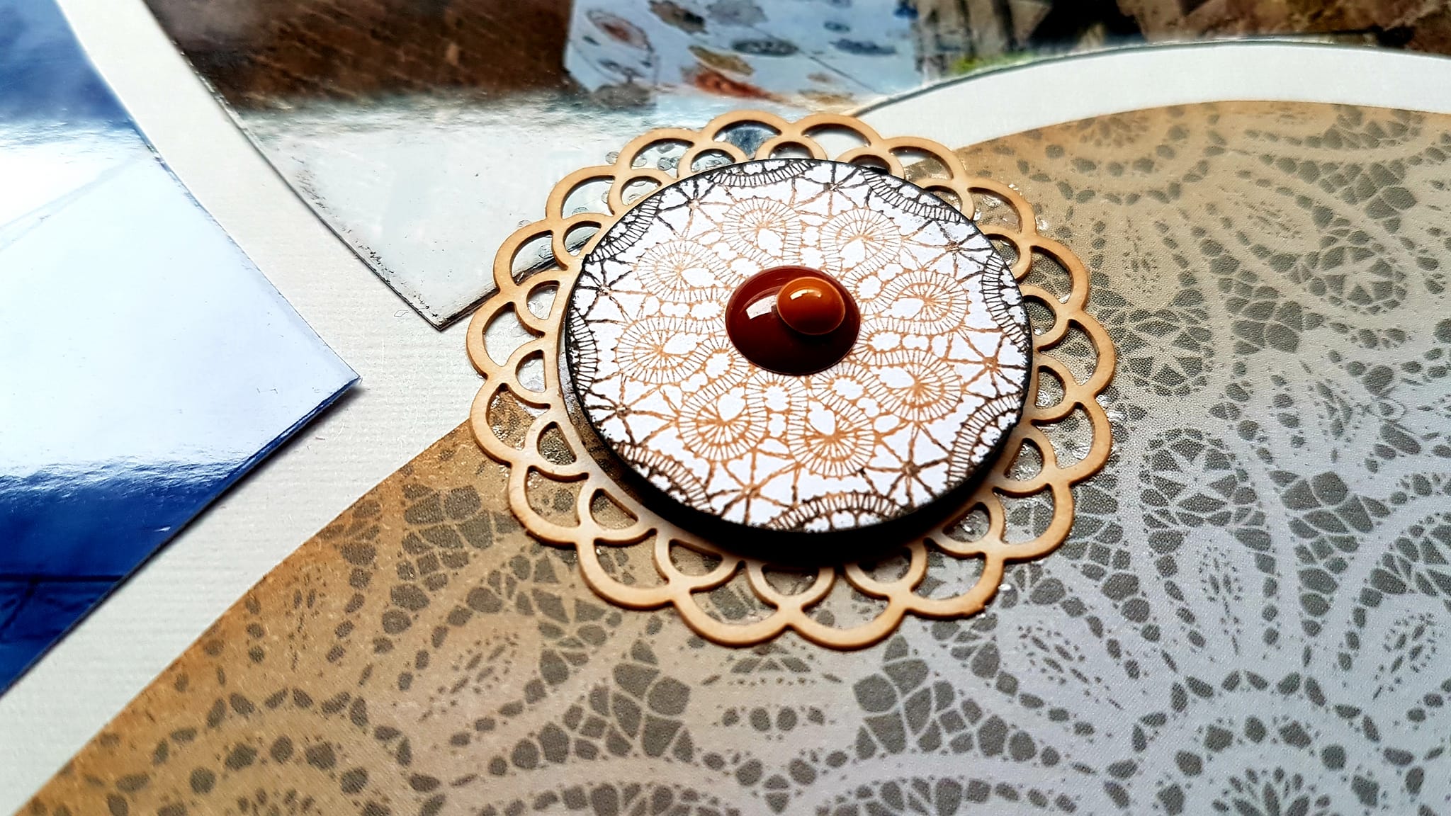 Honorine has created two beautiful pages below showcasing the lovely curves on the stencil and the Lace decoration products.