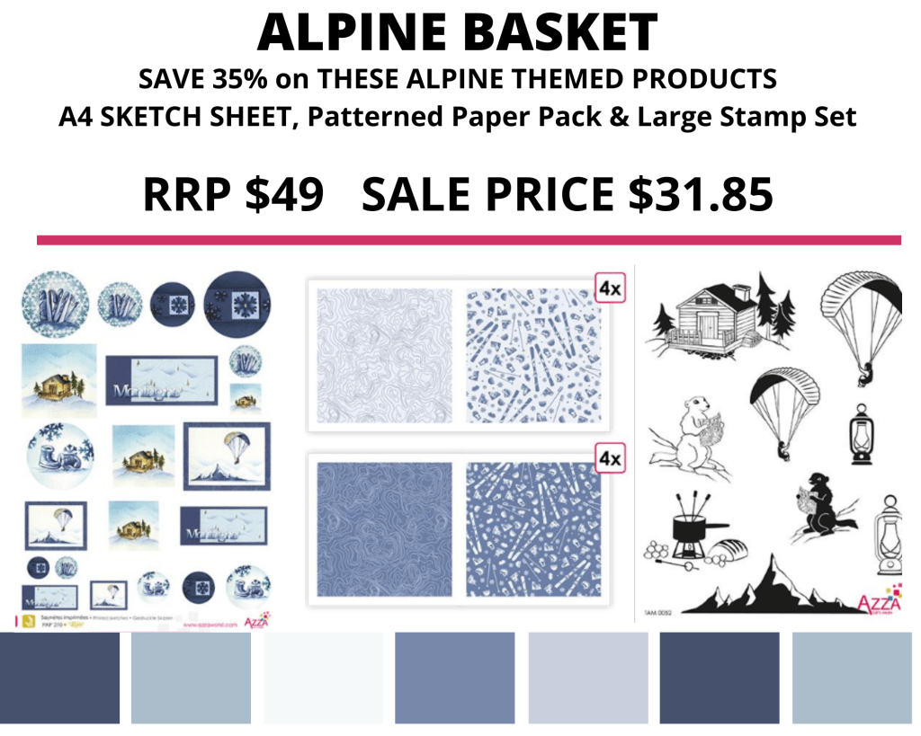 Anita created the lovely pages below, also with the products from Box Set A. AZZA Australia has had an issue with our delivery of the ‘Extra’ products that go into Box B and these have not yet arrived ‘down under’. They are now on their way so will follow the basic box set across Australia as soon as they arrive.