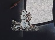 Ruth has used the figures on her page above and created a beautiful shadow effect for them to sit upon. If you cut the figure out carefully, you can use the shape left on the sheet to ink or to chalk the same shape.
