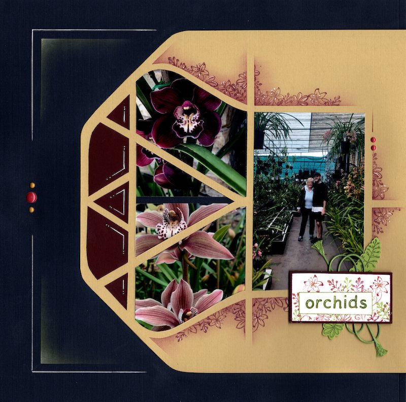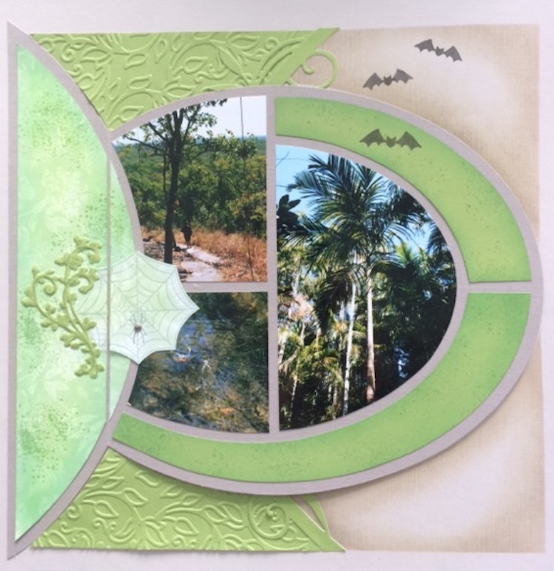 This lovely page by Sophie shows the second die used on the page with the Dallas stencil and below the die used on a card by Brigitte.