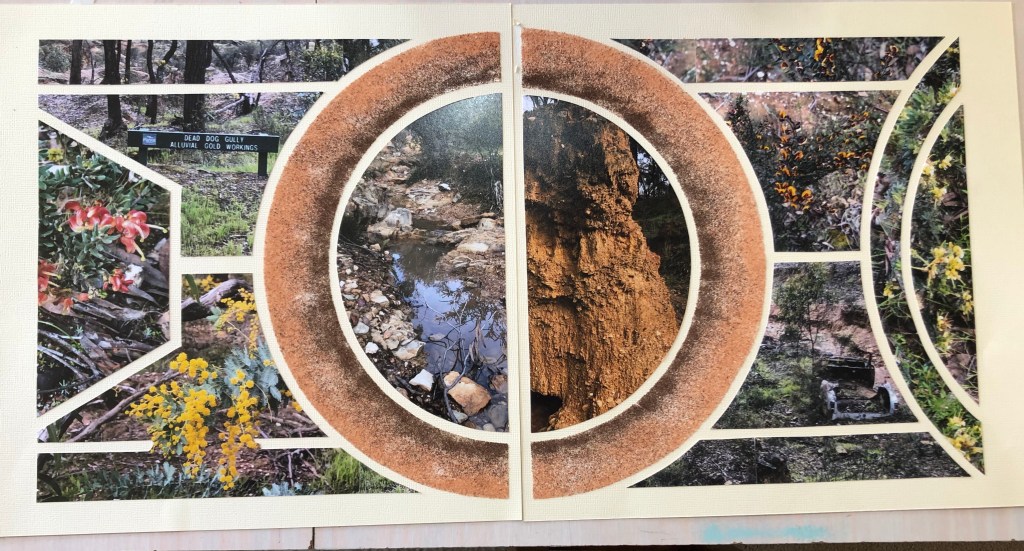 Sue has also used some of the lovely AZZA Australiana products on her ‘blue’ page and she has used the Feathers texture stencil on the paper in her second layout.