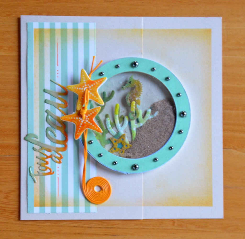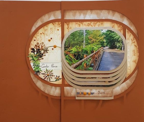 As you can see Zurich does not have to be all about the snow …. April brings a little bit of summer too. The AZZA River themed products released this month are just beautiful. Below Lauren has created a lovely double page with the Zurich stencil and the RIVER themed products. This is a double page, the front page has been cut with the shape of the stencil and the little photo of the duckling in the centre is actually on the back page, that shape has been cut out of the front page as can be seen further in the blog.