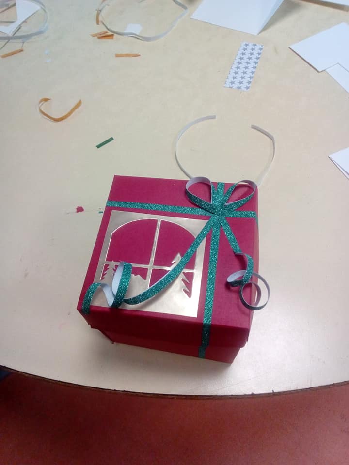 Hilary created this card using the Wreath cutting die from last year together with the Silent night die and the clouds from our ‘Weather’ theme. The windmill and tree are not AZZA dies.