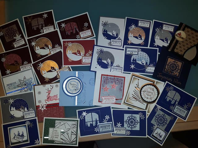 They just keep getting better and better ……. you can see the Snowflake Embossing stencil and cutting die has been used in the card on the bottom. The paper has been torn instead of being cut which does give a lovely effect. The card on the top right has been stamped with the AZZA Silent Night stamp combined with the Snowflake cutting die, Burgundy ink and AZZA pearls.