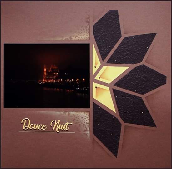 And for something a bit more challenging from Scrap Toinon in Europe. An interesting fold on an AZZA double page with a flippet to keep it closed. I love her use of the AZZA Jute on the decorations. She has used the AZZA Snowflake die as well as the Winter song.