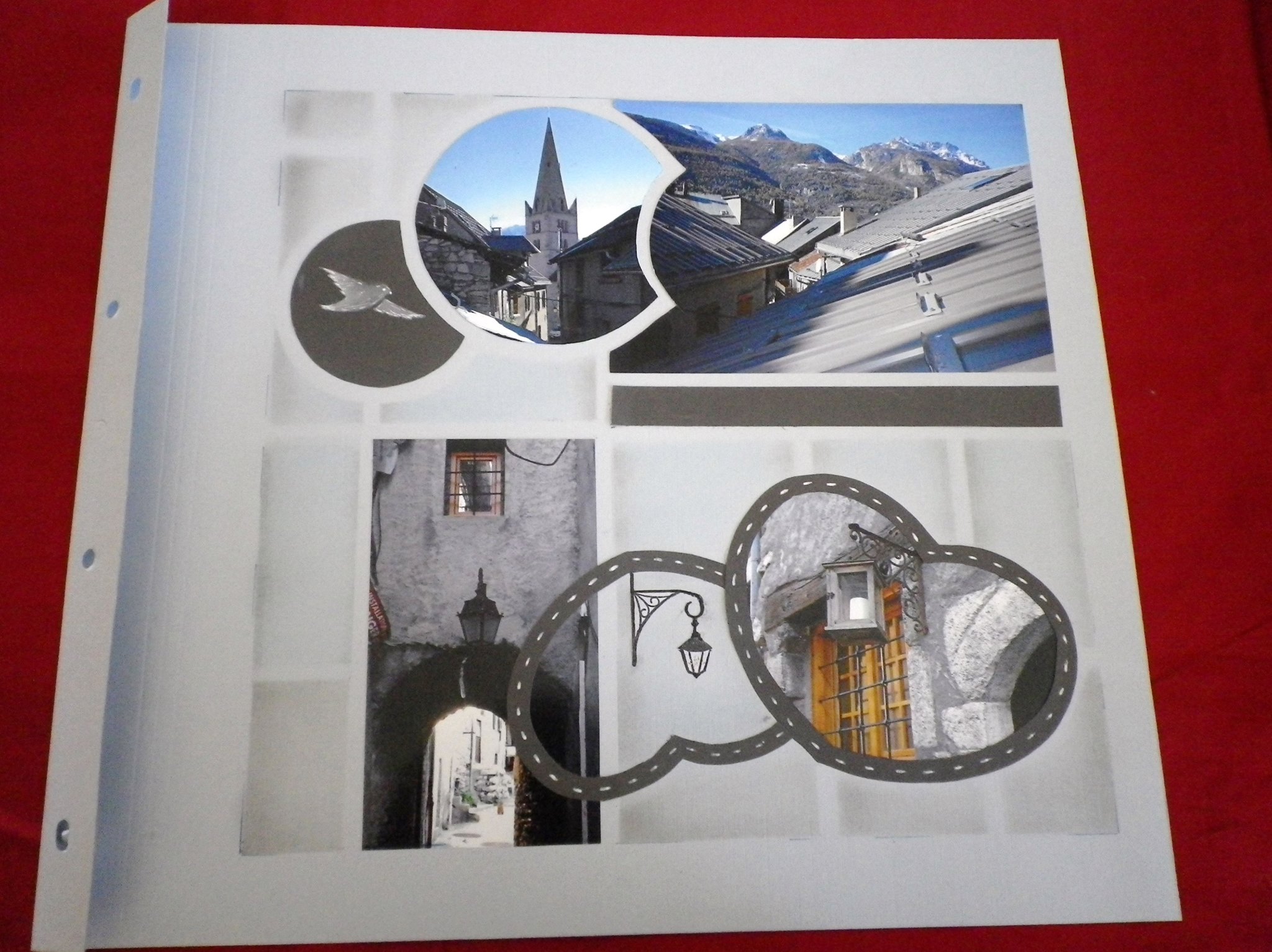 Finished off the page with red paper and border. Silhouette figures used were “Fifi Mandirac’ – PAP 960