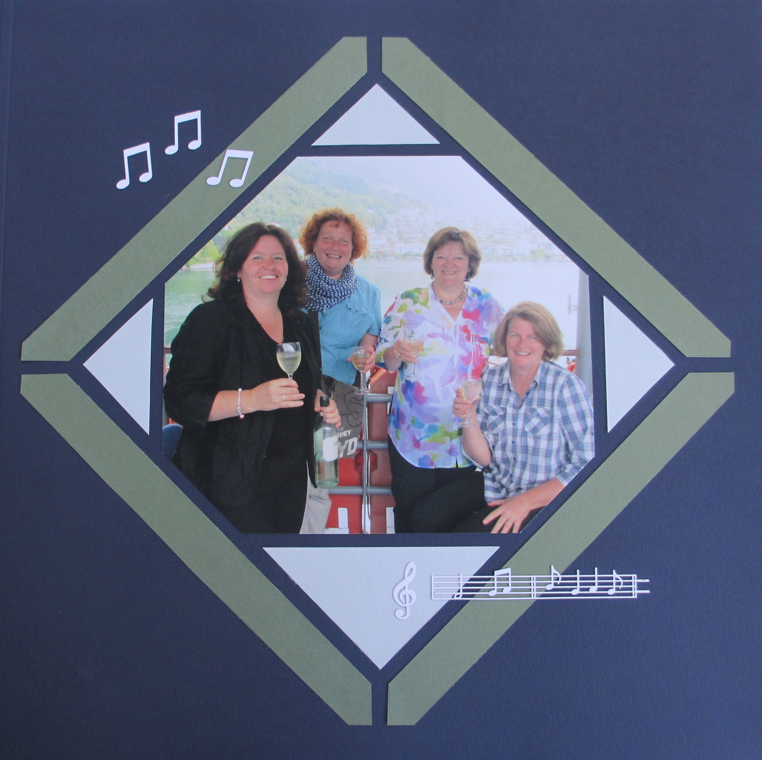 Beautiful simple layout by Floscrap, using the lace figures from the AZZA Winter Pleasures range. Note the white inking on the blue paper and the blue inking of the white page.