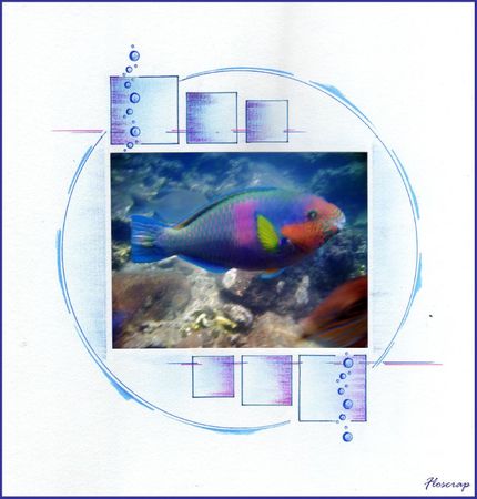Lovely page by Mamzelle, Europe. Love the use of inking in the corners of the borders, note the ‘bubbles’ have all been stamped with different designs.