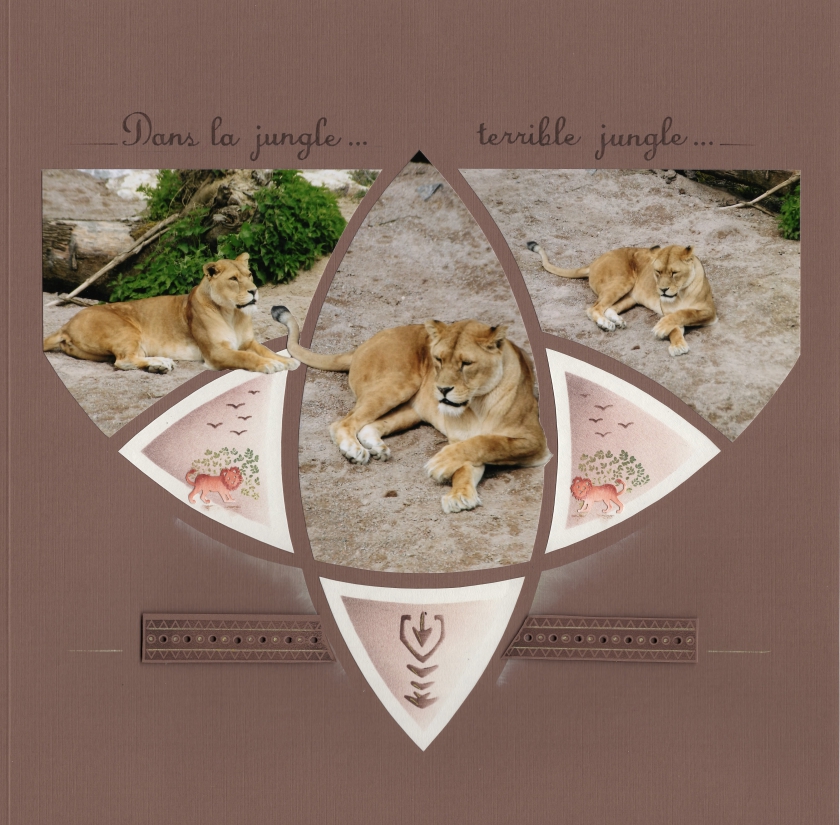 Page by Sabine Lebrun. The strips of colour are stamps strips from Ethnic Motifs stamp set – note the wonderful colouring to match the photos.