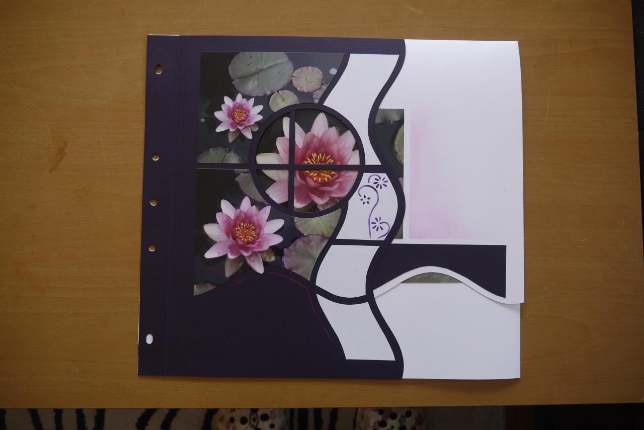 Front view of pre-cut pages. The single page (white) has been used as an inside page as opposed to a Title page.