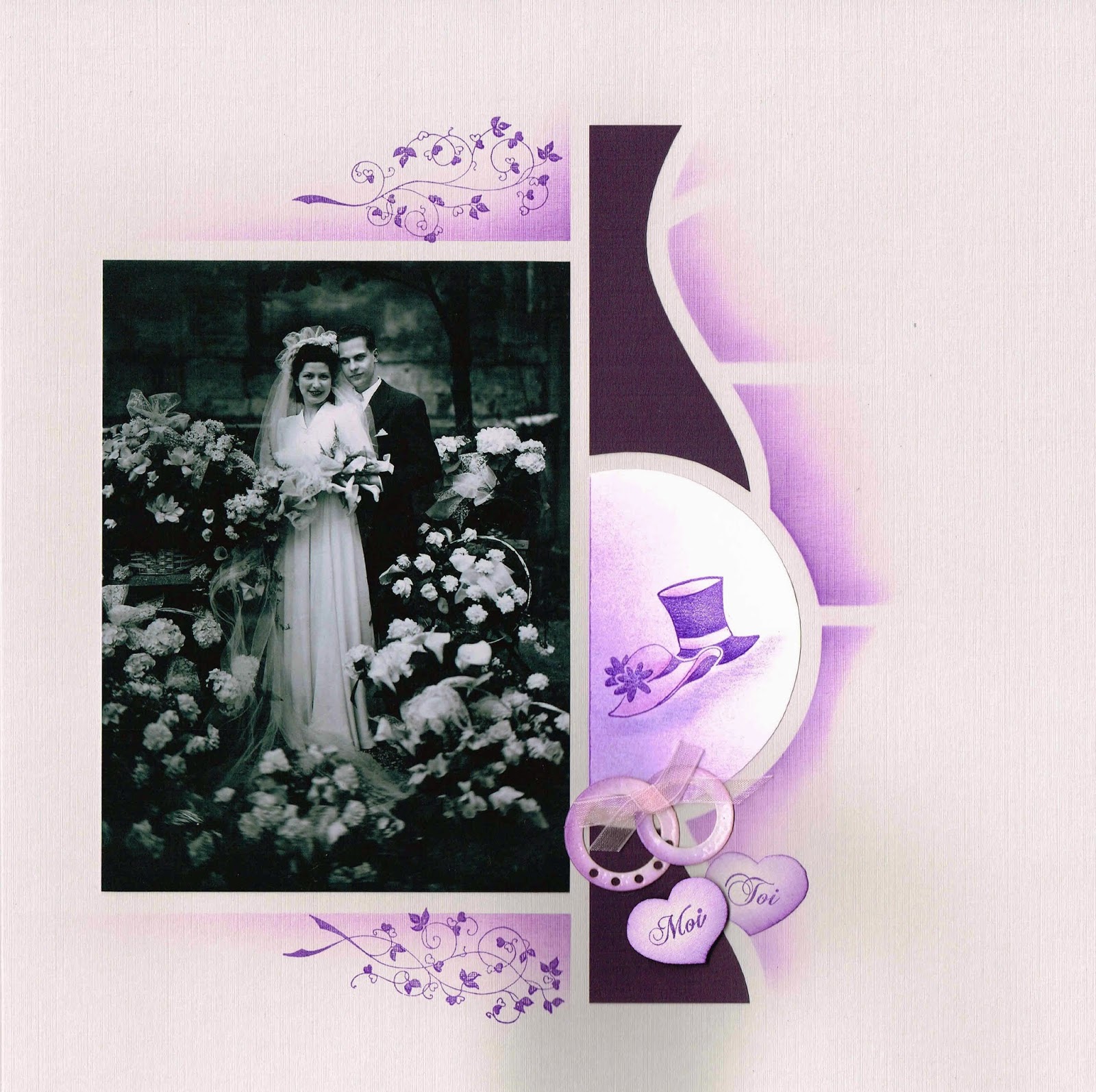 Page by Rosetta Girgenti – using the new Wedding AZZA stamps, Frame figures and Daisies Frieze figures. Template used Sofia-Lima